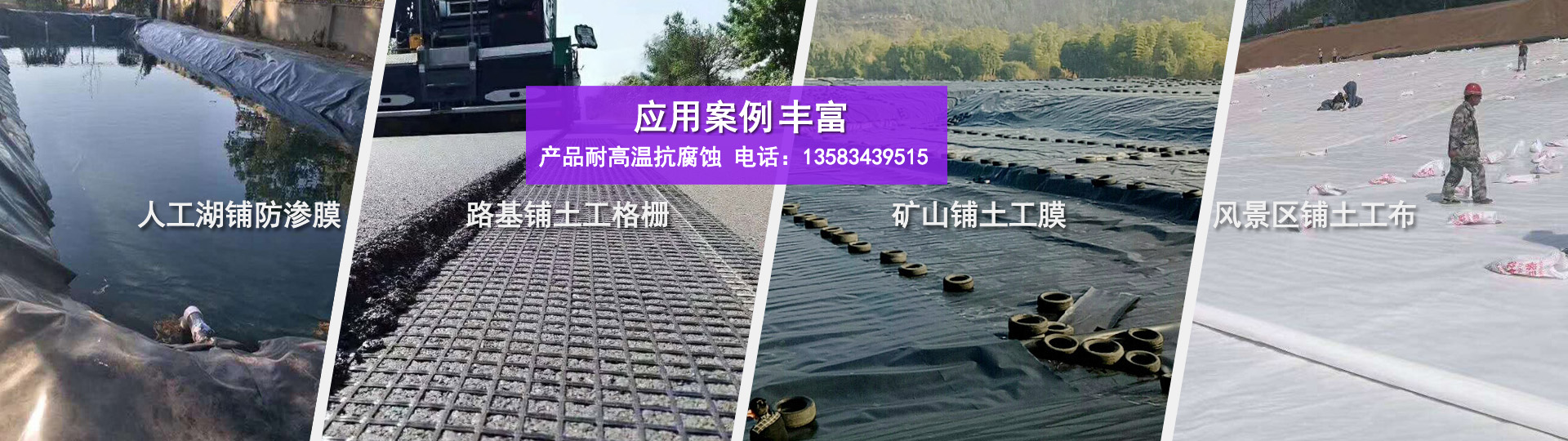 產品廣泛用于: 1.環保環衛工程(如生活垃圾填埋場防滲、污水處理廠、有毒有害物質填埋場、危險品倉庫、廠房等) 2.水利土木工程(河、湖、水庫、堤壩、堵漏、加固、水渠防滲、護坡等) 3.市政工程(地鐵、建筑物的地下工程和屋頂蓄水池、屋頂花園防滲、污水管道內襯等) 4.園林綠化(人工湖、池塘、高爾夫球場的水塘底襯、護坡等) 5.石化(化工廠、煉油廠儲油池防滲防污、化學反應池、沉淀池的內襯、二次襯層、藥廠基建防滲與隔離) 6.礦業(洗選池、堆浸池、堆灰場、尾礦壩防滲防污等) 7.交通設施工(公路的基礎加固、涵洞的防滲) 8.農業(水庫、飲用水池、蓄水池防滲、灌溉系統的防滲) 9.水產養殖業(魚塘、蝦池的內襯等)
